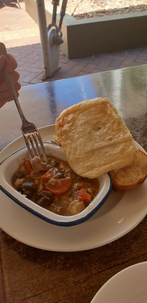One of three eating places in town square at Yulara. Large indoor/outdoor cafe. Extensive menu. Went for the Fields & Forests pizza. It was actually amazing. I didn’t expect much tbh but it was a large delicious pizza with loads of mozzarella, garlic, mushroom, artichoke, olive and onion. Washed down with a rather expensive Stone & Wood Pale Age ($15 for a small bottle!!! Ouch) and Yaru fruit flavoured sparkling water. Service a little lackluster as one woman speaking to customers for at least 5 minutes while we sat and waited to be served. It was not busy at the time. Open all day.